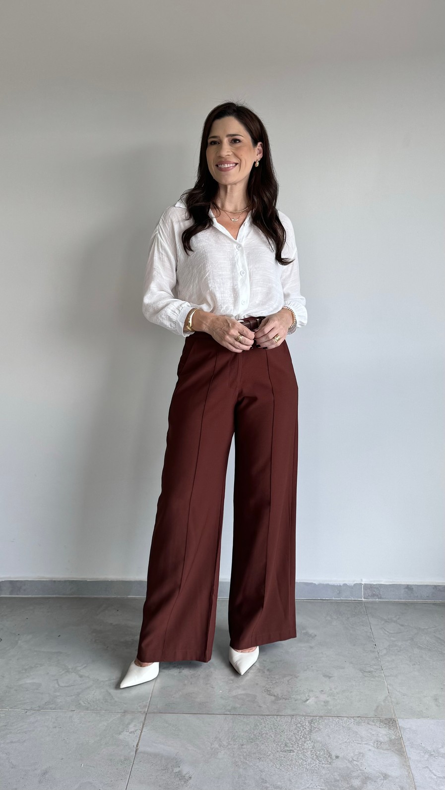 Disponível em cores atemporais como vinho, marrom, preto, nude e azul marinho essa calça transita perfeitamente entre o casual e o formal. Combine com blusas leves para um look despojado ou com camisas de alfaiataria para uma produção sofisticada. Finalize com scarpins ou sandálias de salto para um toque ainda mais refinado.